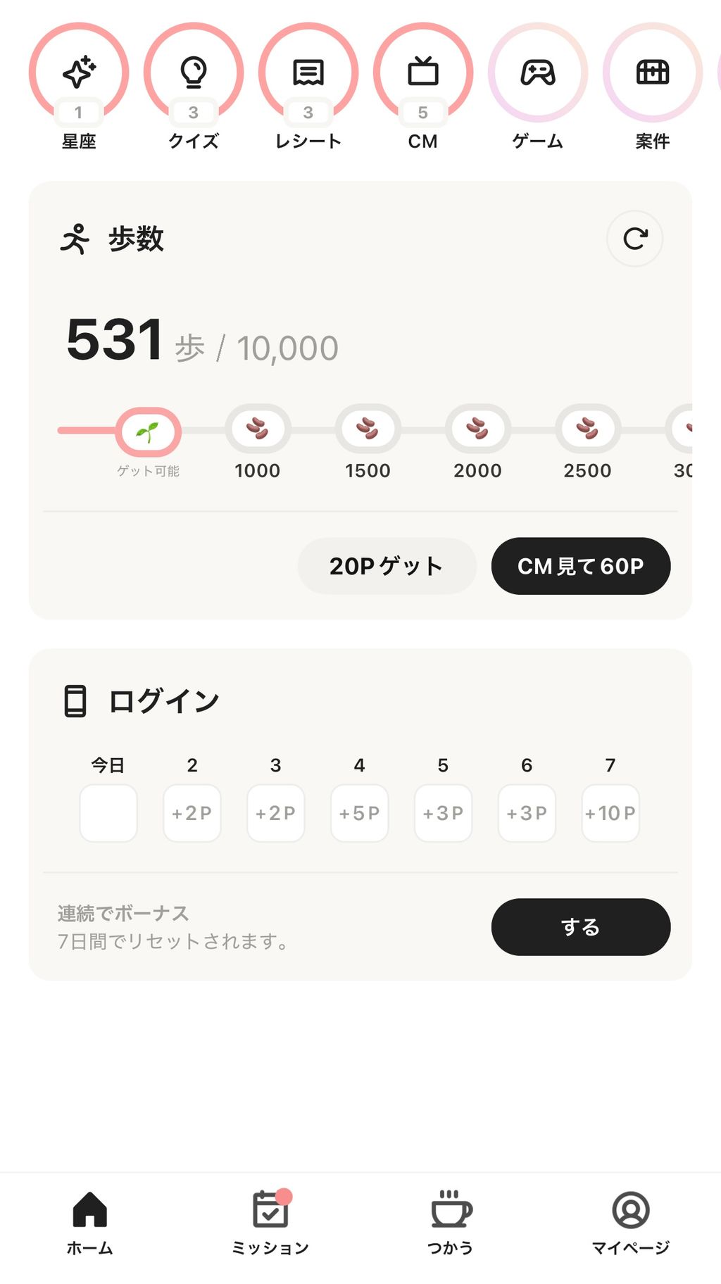 また新しいホームの追加に伴って、連続してログインいただいた方に対してボーナスポイントを配布する仕様を追加いたしました。